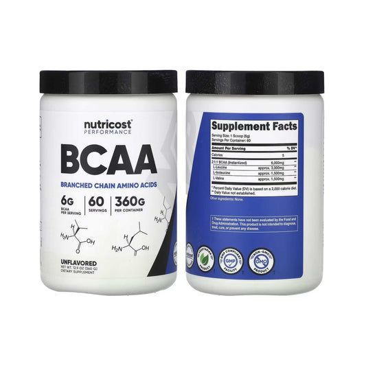 Nutricost BCAA Unflavored 180g/360g (30/60 servings)